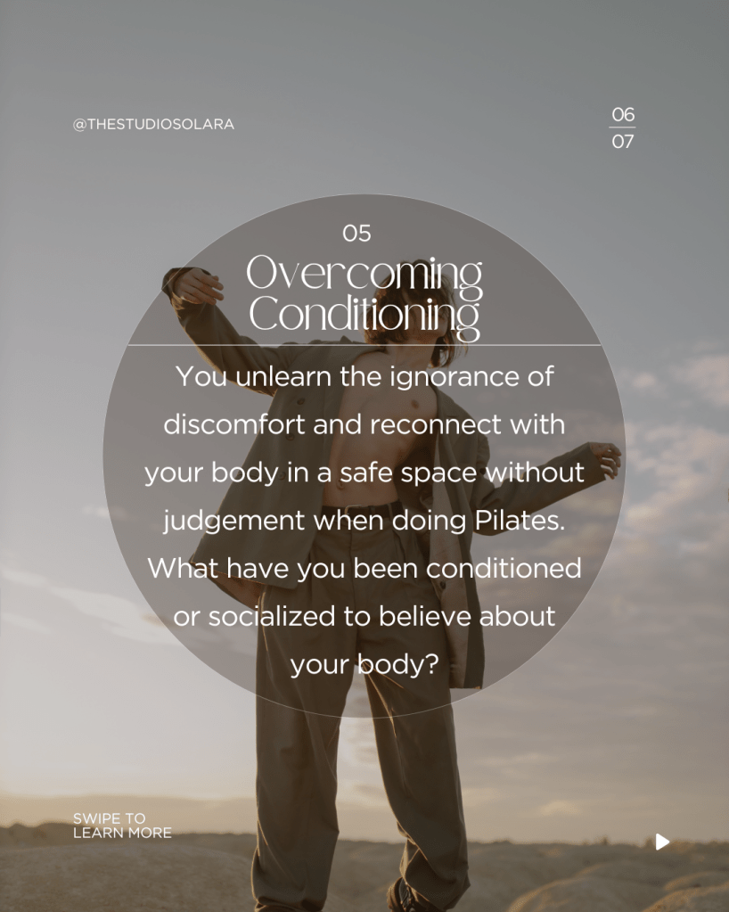 - You unlearn the ignorance of discomfort and reconnect with your body in a safe space without judgement when doing Pilates. What have you been conditioned or socialized to believe about your body?