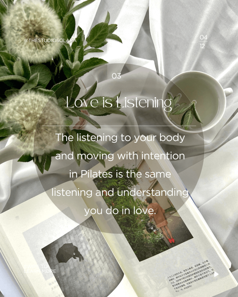 - The listening to your body and moving with intention in Pilates is the same listening and understanding you do in love.