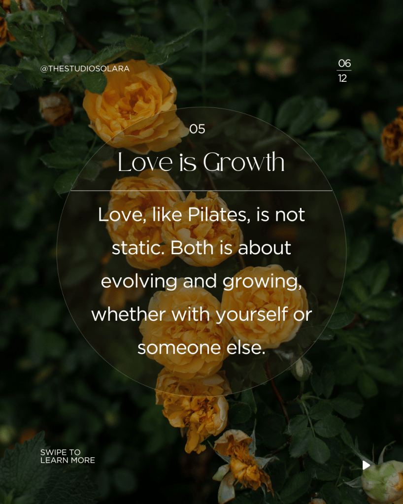 - Love, like Pilates, is not static. Both is about evolving and growing, whether with yourself or someone else.
