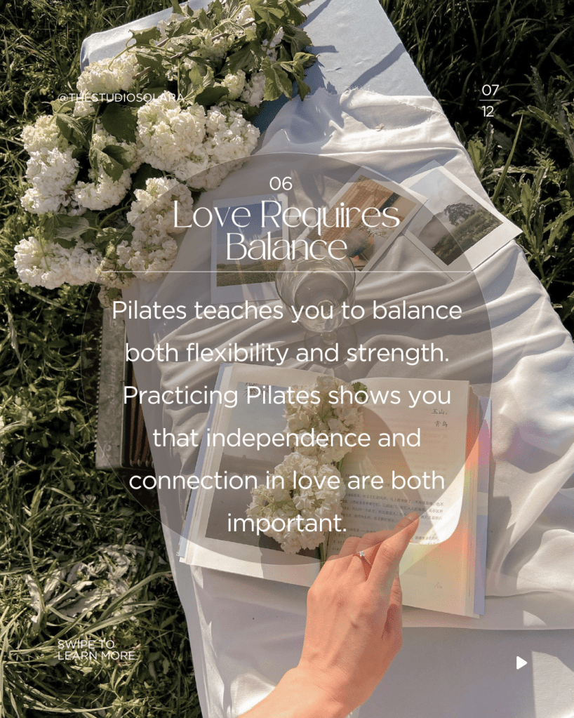 - Pilates teaches you to balance both flexibility and strength. Practicing Pilates shows you that independence and connection in love are both important.