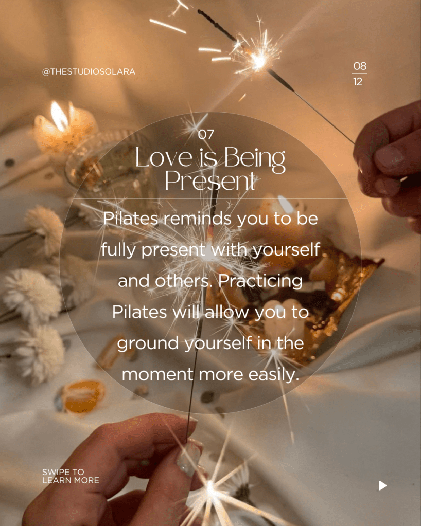 - Pilates reminds us that we don’t need to be perfect to be love, we just need to show up and accept where we are in our journey.