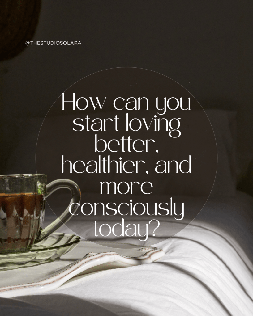 Love should first and foremost, be given to the self then to others. Love cannot be given to those around you from an empty shell without love. How can you start loving better, healthier, and more consciously today?