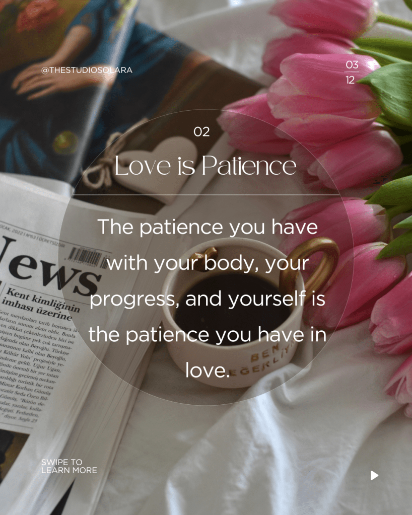 - The patience you have with your body, your progress, and yourself is the patience you have in love.