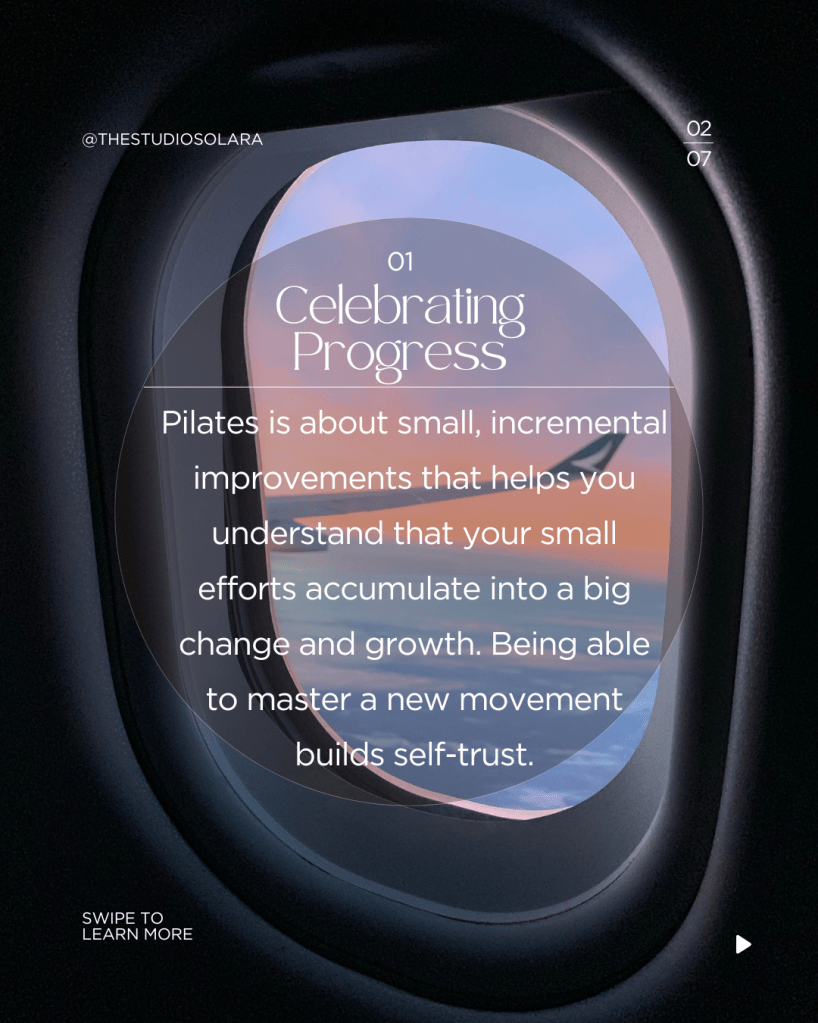 - Pilates is about small, incremental improvements that helps you understand that your small efforts accumulate into a big change and growth. Being able to master a new movement builds self-trust.