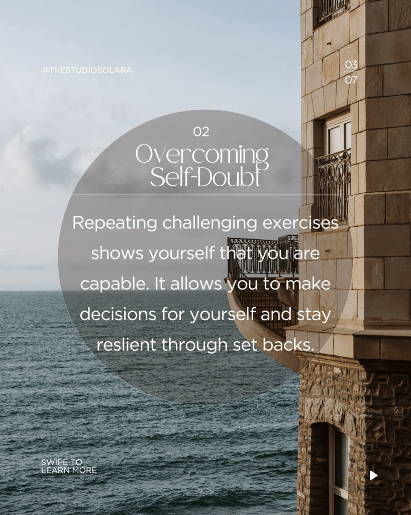 - Repeating challenging exercises shows yourself that you are capable. It allows you to make decisions for yourself and stay resilient through set backs.
