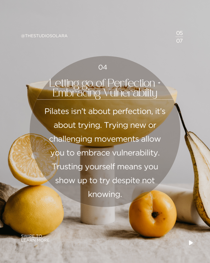 - Pilates isn’t about perfection, it’s about trying. Trying new or challenging movements allow you to embrace vulnerability. Trusting yourself means you show up to try despite not knowing.