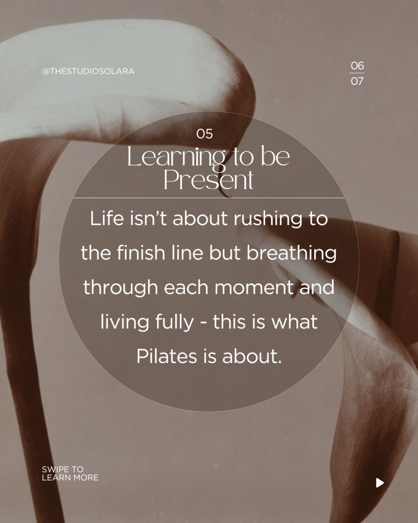 - Life isn’t about rushing to the finish line but breathing through each moment and living fully – this is what Pilates is about.